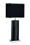 - Table lamp with black ceramic body and horizontal rings for dimension